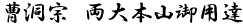 大本山「總持寺祖院」様より、平成3年「可御用達」の許可証を頂戴し、このたび、新たに御用達」の看板を戴きました。 御用達の重みをあらためて感じるところです。 その名を穢さぬよう切磋琢磨する所存でございます。 大本山「總持寺祖院」様には、昭和六十三年今上、天皇陛下、皇后陛下が皇太子殿下、妃殿下であられた折、總持寺祖院ご来院に際して法堂に、内陣荘厳具一式をご上納するという栄に浴しました。 誠に誉れとするところでございます。